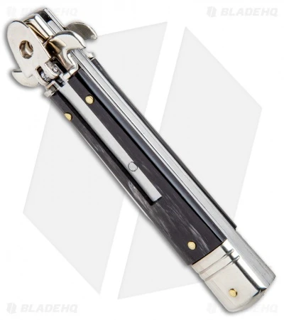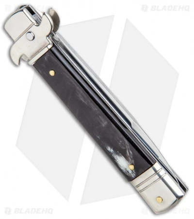 This 7.75″ Italian Stiletto from AKC comes in the Leverletto style with a dark horn handle and a bayonet blade. AKC specializes in collectible Italian stilettos made with traditional knife-making techniques. The blade comes in a bayonet style with a plain edge and a satin finish. Add classic Italian style to your collection with the AKC 7.75″ Leverletto stiletto.